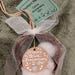 The ornament tag can be personalized with my handwriting in white ink with a short phase or date or names. Be sure to check for accuracy. There may be 2 tags to accomodate the personalization..
